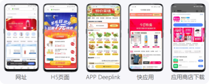 应用下载、商城导流、福利派发、下单订购等