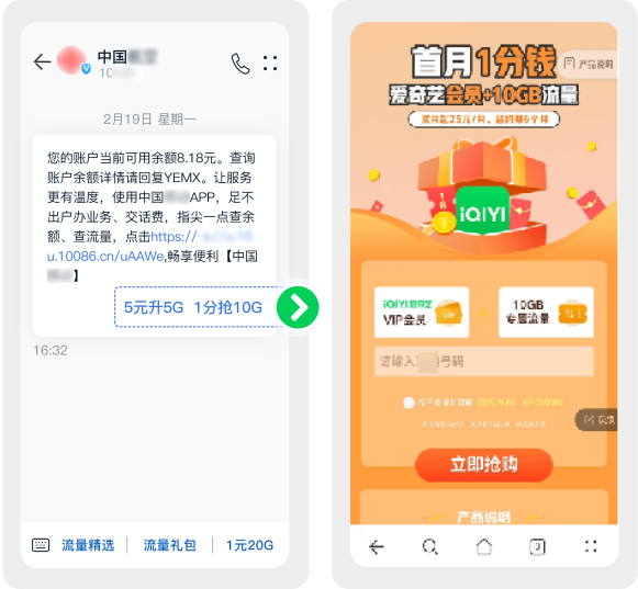 投放链路:跳转浏览器活动页面→输入手机号办理