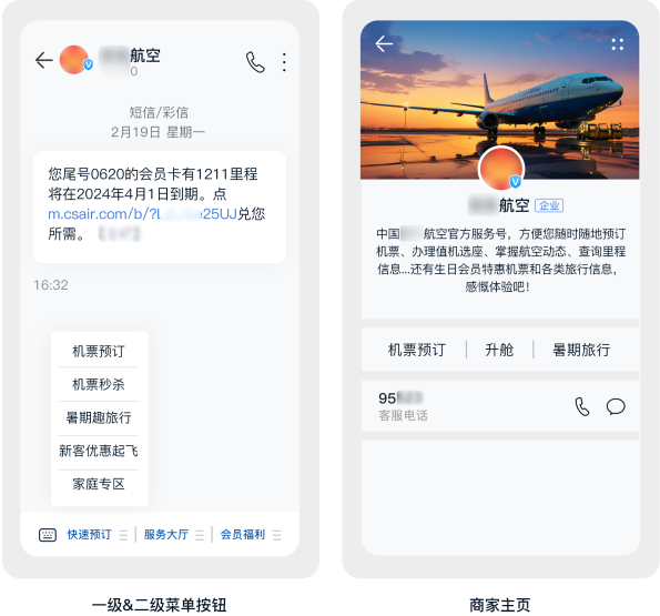 投放资源:短信公众号(logo认证+商家主页+菜单栏)